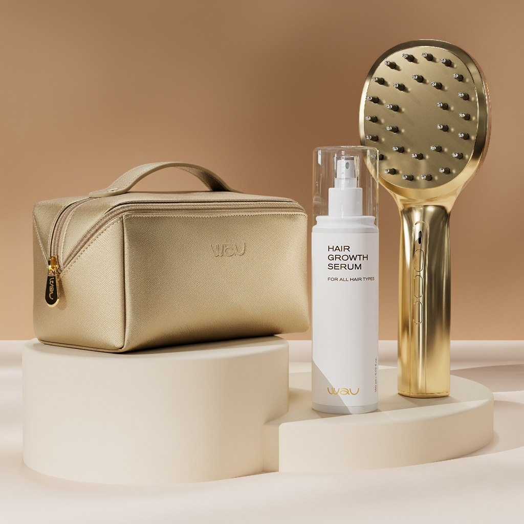 هل سئمت من تساقط الشعر ونموه البطيء؟ نقدم لك حلاً متكاملاً جاهزاً. مجموعة «قوة الشعر» — نظام مدروس وسهل العناية. جهاز تدليك احترافي وسيروم عالي الفعالية يعملان معًا لتحفيز النمو وتقوية خصلات شعرك، بينما توفر لك حقيبة تجميل أنيقة سهولة تخزين جميع المنتجات.