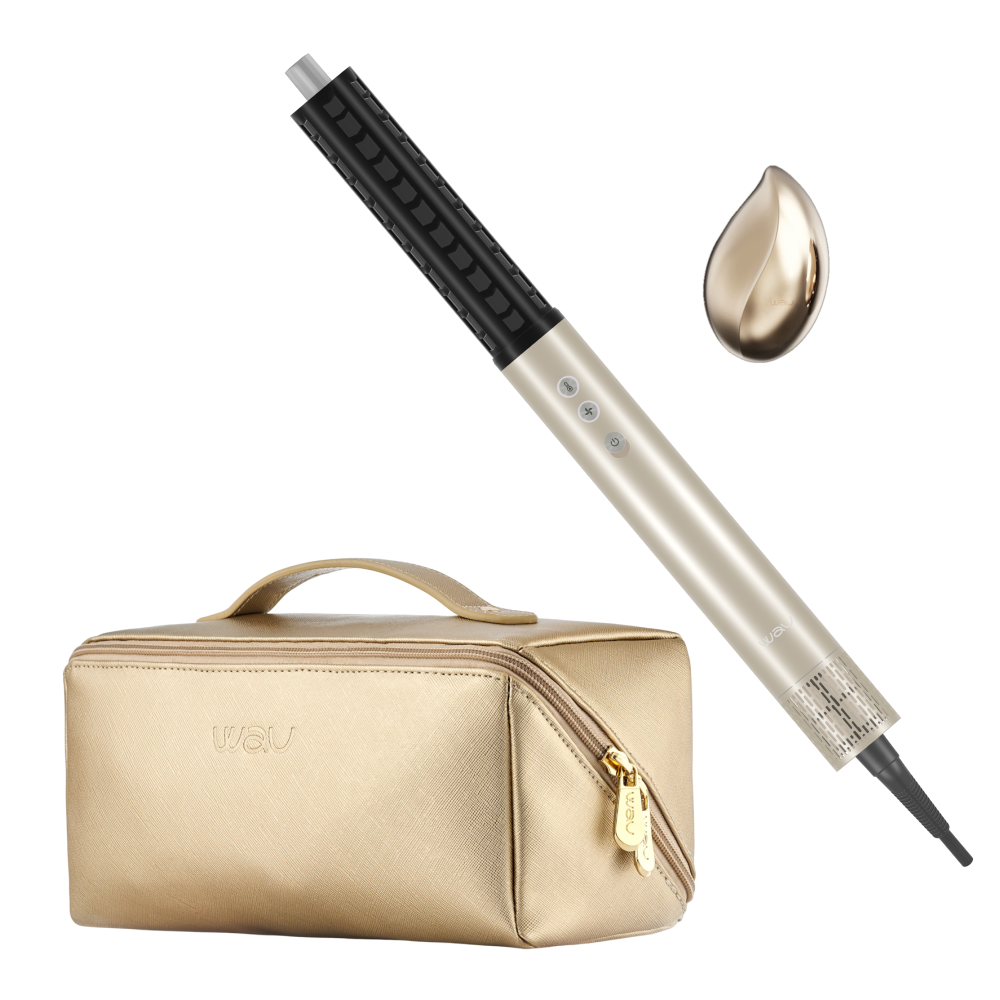 مجموعة كاملة لتصفيف الشعر. تشمل جهاز تصفيف الشعر المتعدد KARU، مشط GOLDEN LEAF وحقيبة مكياج أنيقة RENGA GOLD.