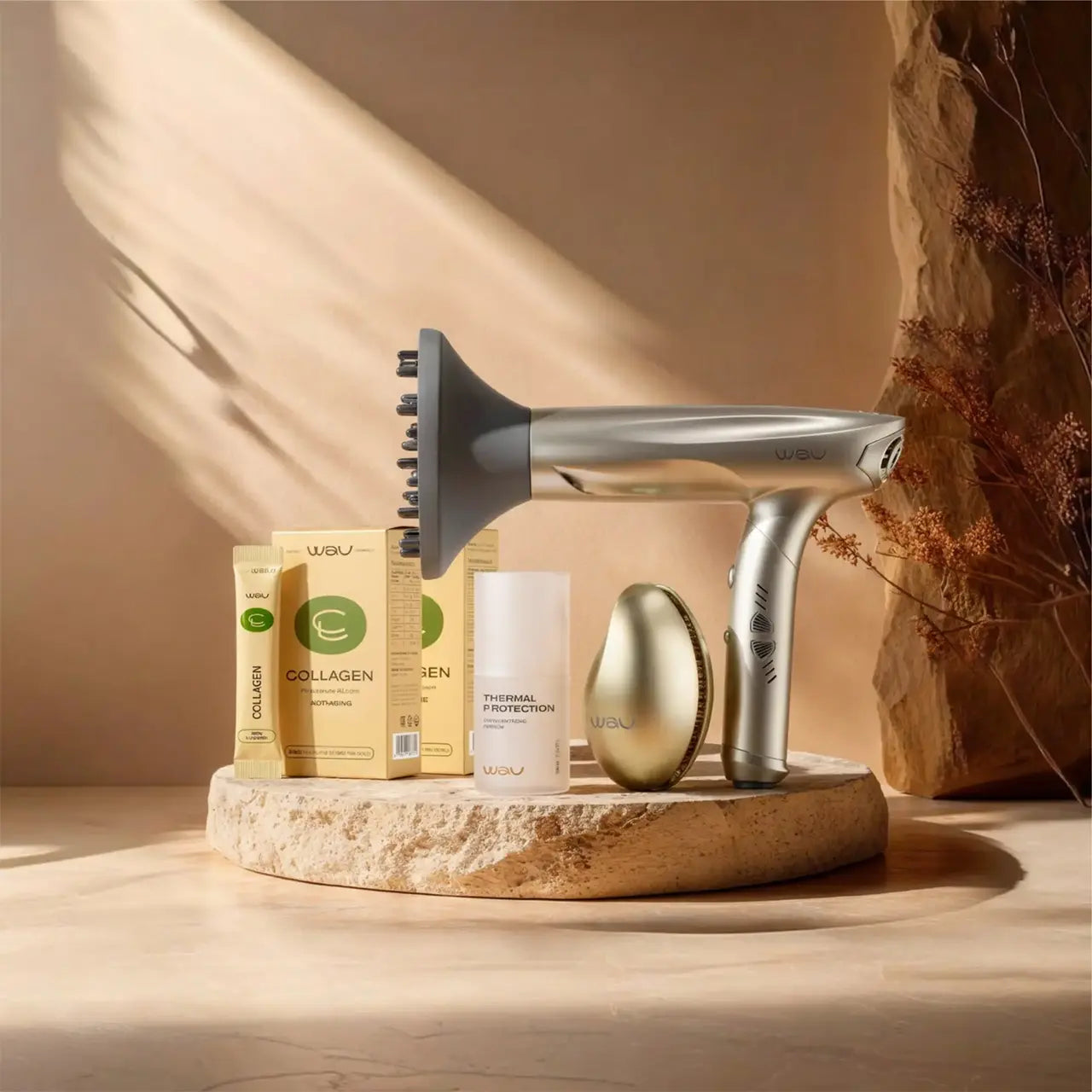 Die Formel der Schönheit für Ihre Haare. Der innovative Föhn, Haarschutz und Kollagen in einem Set verleihen Ihren Haaren einen luxuriösen Look und Gesundheit zur Feiertagszeit. Schenken Sie sich selbst oder Ihren Liebsten!