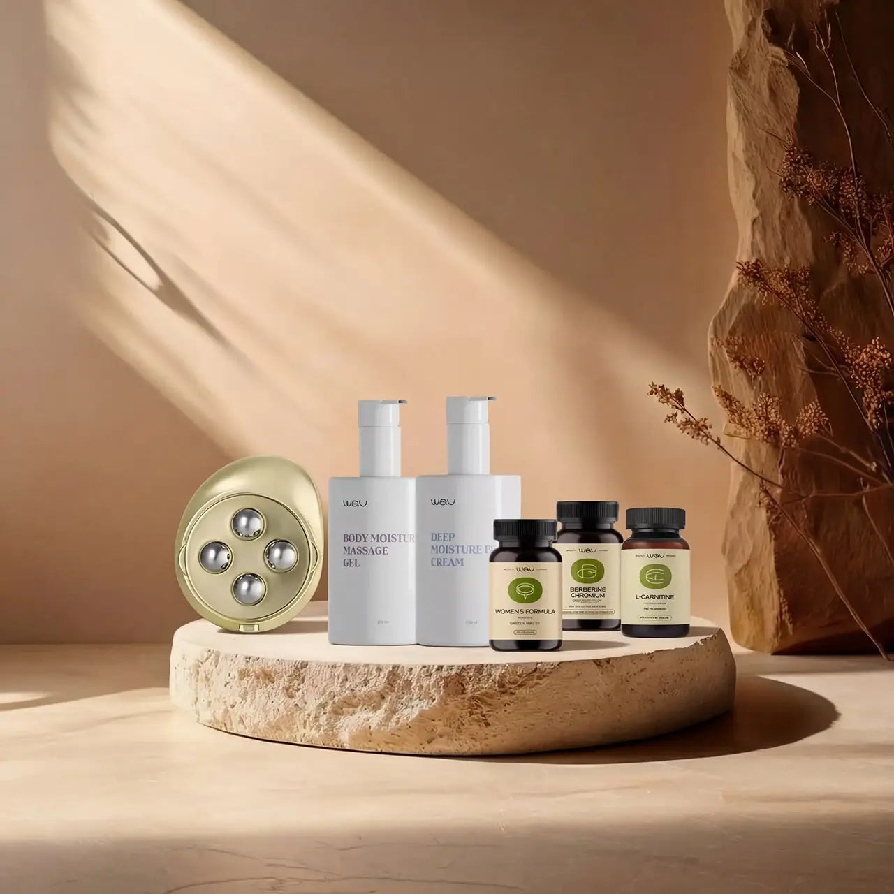 Идеальный набор для комплексного преображения женской фигуры. Объединяет технологии коррекции тела, интенсивного ухода за кожей и внутренней поддержки организма. Многофункциональный массажер KIO с тремя технологиями воздействия моделирует контуры тела, специализированные средства ухода и добавки усиливают результат, ухаживают за кожей и дают энергию для активного образа жизни