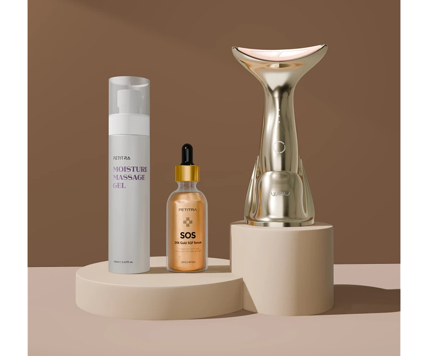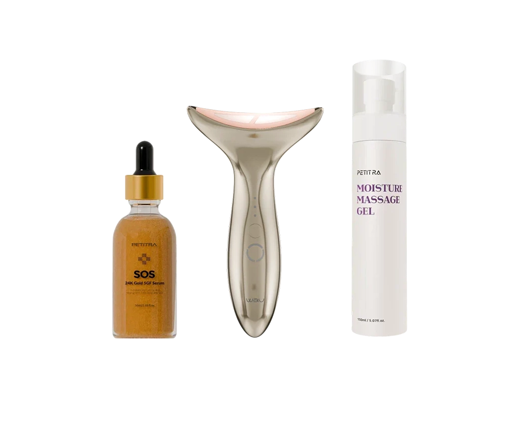 Комплекс для профессионального ухода в домашних условиях. Многофункциональный массажер MAMI New с 3 технологиями, сыворотка SOS Gold с золотом для мгновенного лифтинга и проводящий гель для усиления эффекта. Обеспечивает видимый результат: подтяжка, сокращение морщин, сияние и ровный тон кожи. Комплект прост в использовании и подходит для всех типов кожи
