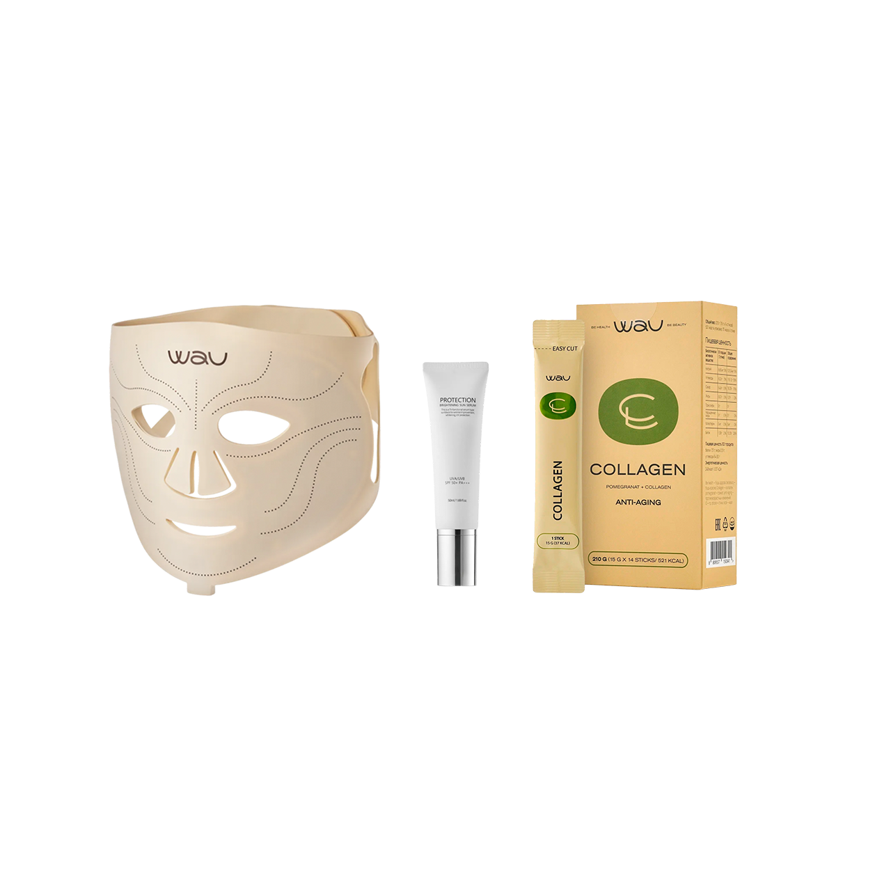 LED MASK 2.0 resuelve varios problemas cosméticos a la vez y potencia la eficacia de los productos de cuidado al actuar sobre la piel a nivel celular, mientras que SUN SERUM SPF50 hidrata profundamente y protege la piel del impacto ambiental. COLLAGEN nutre y rejuvenece la piel desde adentro, estimulando la producción natural de colágeno. El resultado es una piel firme, radiante y un tono uniforme.