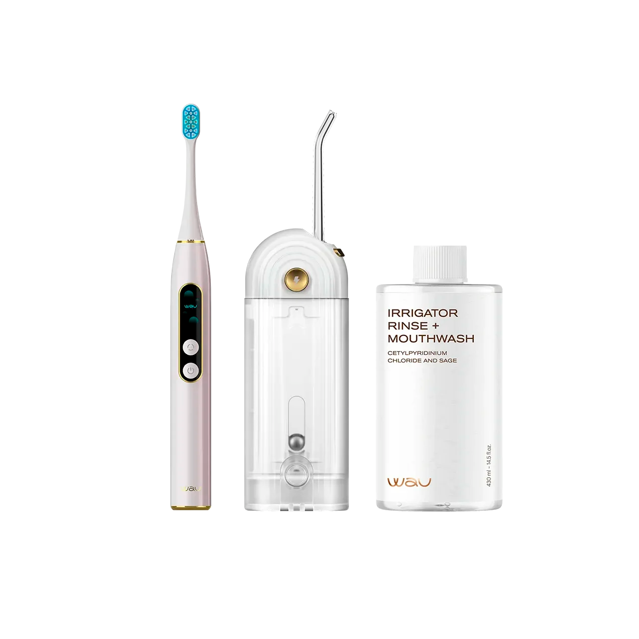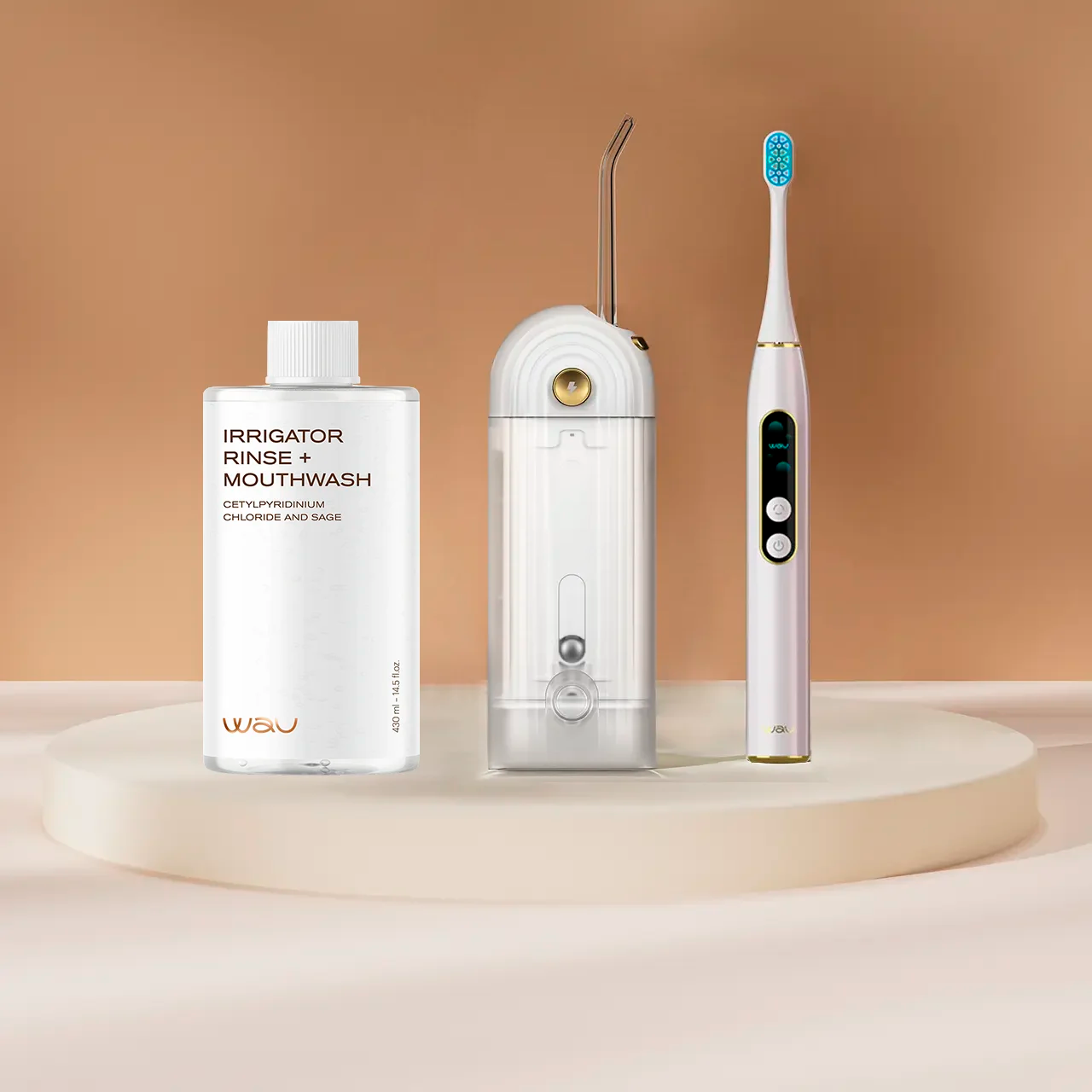 Толық гигиена үшін тандем. MORI 2.0 дыбыстық тіс щеткасы эмальды терең тазалап, шырышты қабатты массаждайды, ал MIGA Pro портативті ирригатор қиындаған жерлерден ластануды алып, стерильдікті қамтамасыз етеді, сонымен қатар ополаскиватель шырышты қабаттың жағдайын жақсартады және кариес дамуына кедергі жасайды.