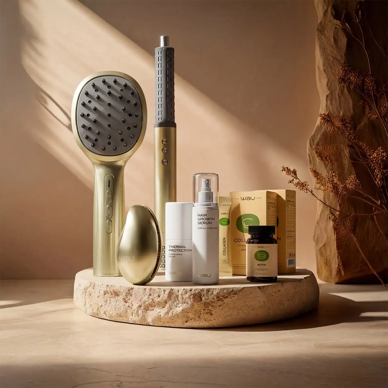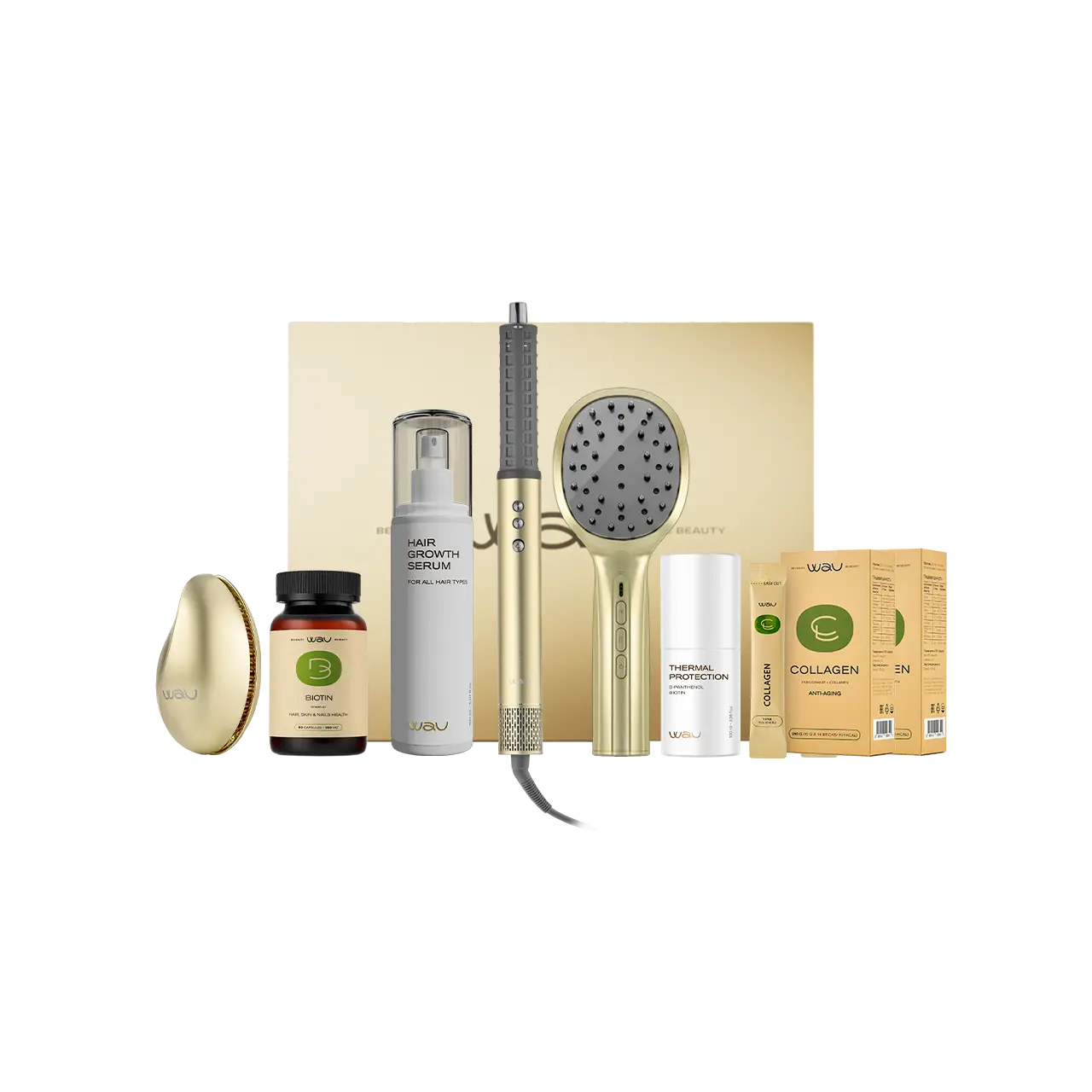 Deze box is de perfecte formule voor haarverzorging, van drogen tot diep herstel. Een massager voor het stimuleren van haargroei, een multifunctionele styler, een stimulerende serum, een stijlvolle borstel en vitamines in één set geven het haar een luxueus uiterlijk en gezondheid tegen de feestdagen. Behandel uzelf of uw dierbaren!