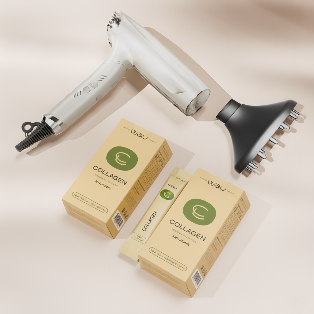 Zestaw do delikatnej pielęgnacji, łatwego suszenia i nieskazitelnej stylizacji włosów. YUTO — nowoczesna suszarka do delikatnego suszenia, a GOLDEN LEAF — stylowa szczotka, która łatwo rozplątuje włosy i nadaje się do masażu skóry głowy. Dyfuzor pomaga nadać objętość i stworzyć loki. COLLAGEN odżywia i wzmacnia skórę, włosy i paznokcie od wewnątrz