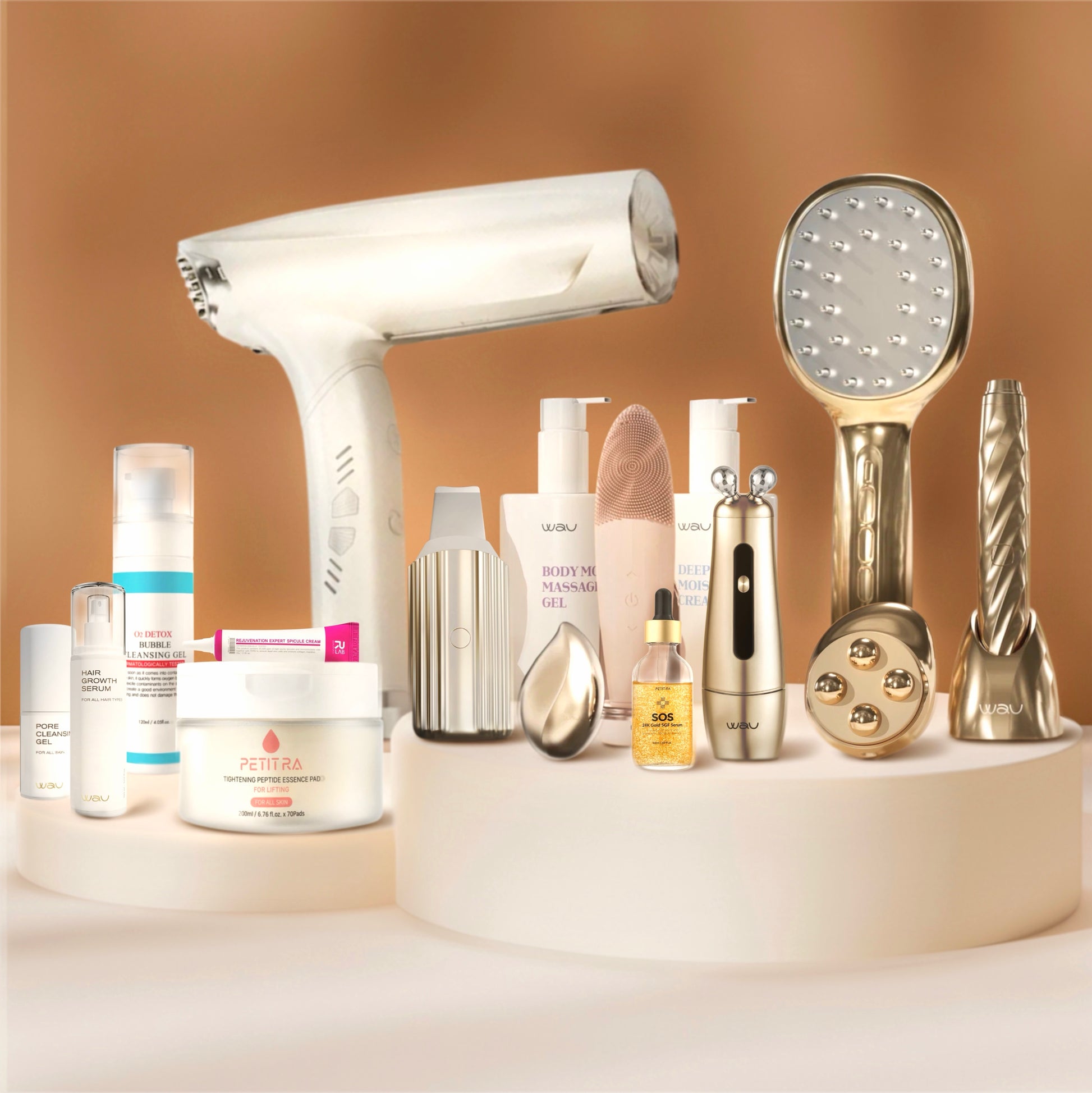 Эксклюзивный комплект премиальных массажеров и косметики для безупречной красоты от лица до кончиков волос. Набор объединяет 7 инновационных устройств и 10 профессиональных средств для комплексного 360-градусного ухода за кожей, телом и волосами. Это всё, что нужно для создания вашей личной салонной роскоши в домашних условиях.