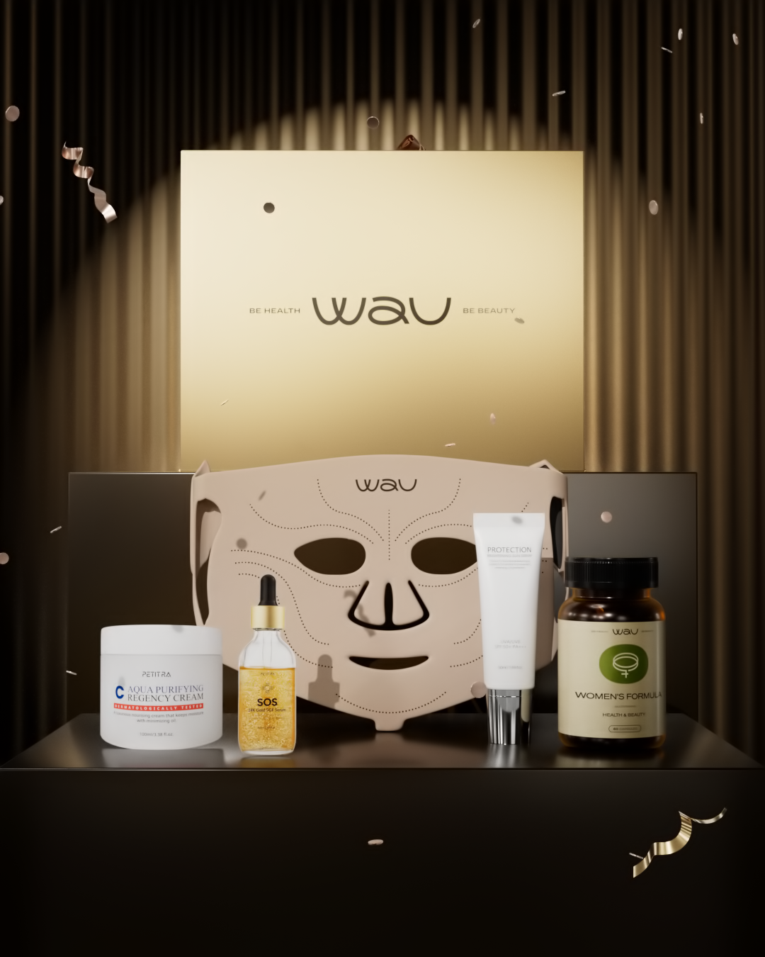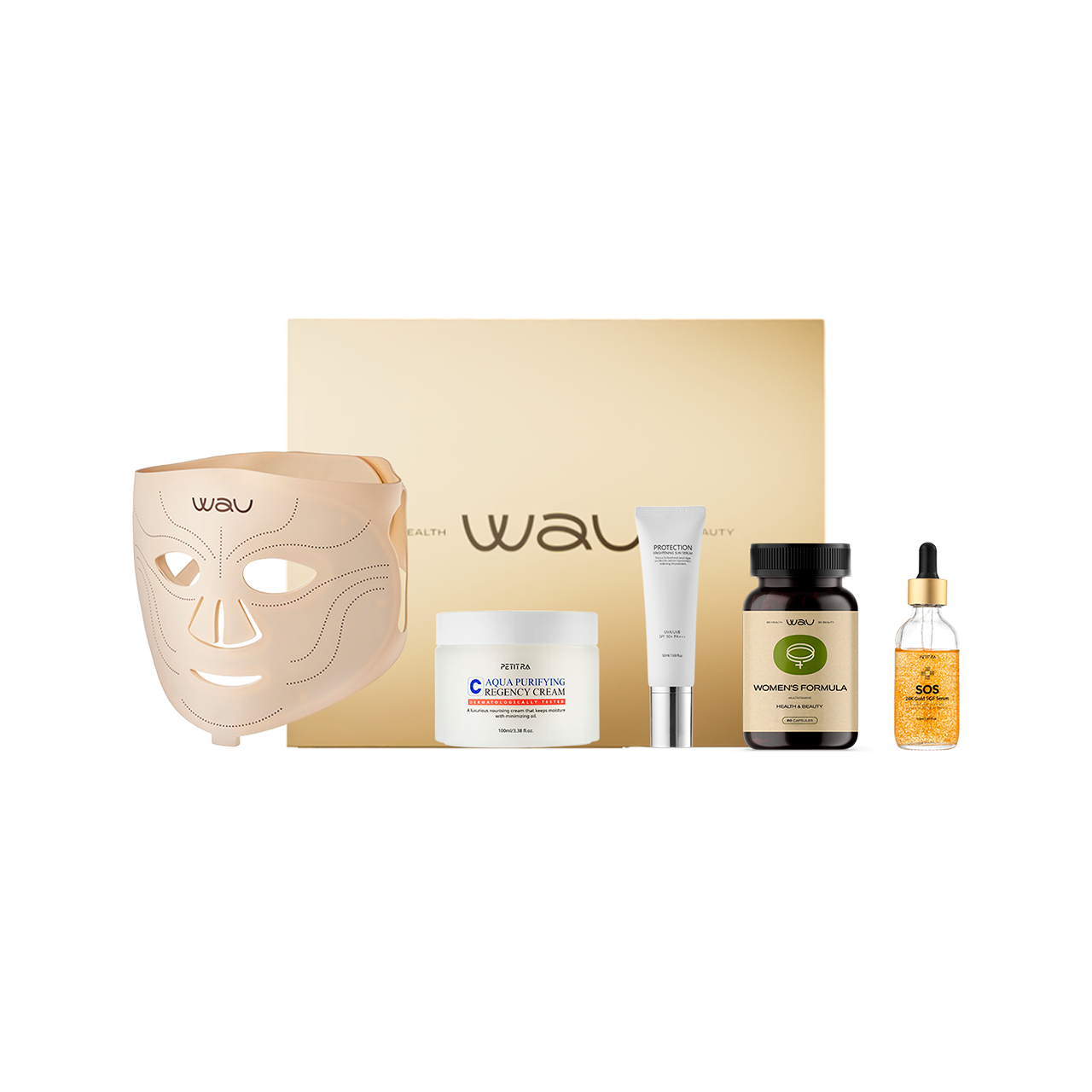 Премиальный набор для домашнего ухода станет идеальным праздничным подарком. В основе комплекта — LED-маска с многоспектральной терапией: разглаживает морщины, борется с воспалениями, успокаивает и осветляет пигментацию. Набор дополнен уходовой косметикой: сывороткой SPF50, лифтинг-сывороткой с золотом SOS GOLD, регенерирующим кремом и женским витаминным комплексом для усиления эффекта изнутри. Встречайте Новый год с сияющей кожей!
