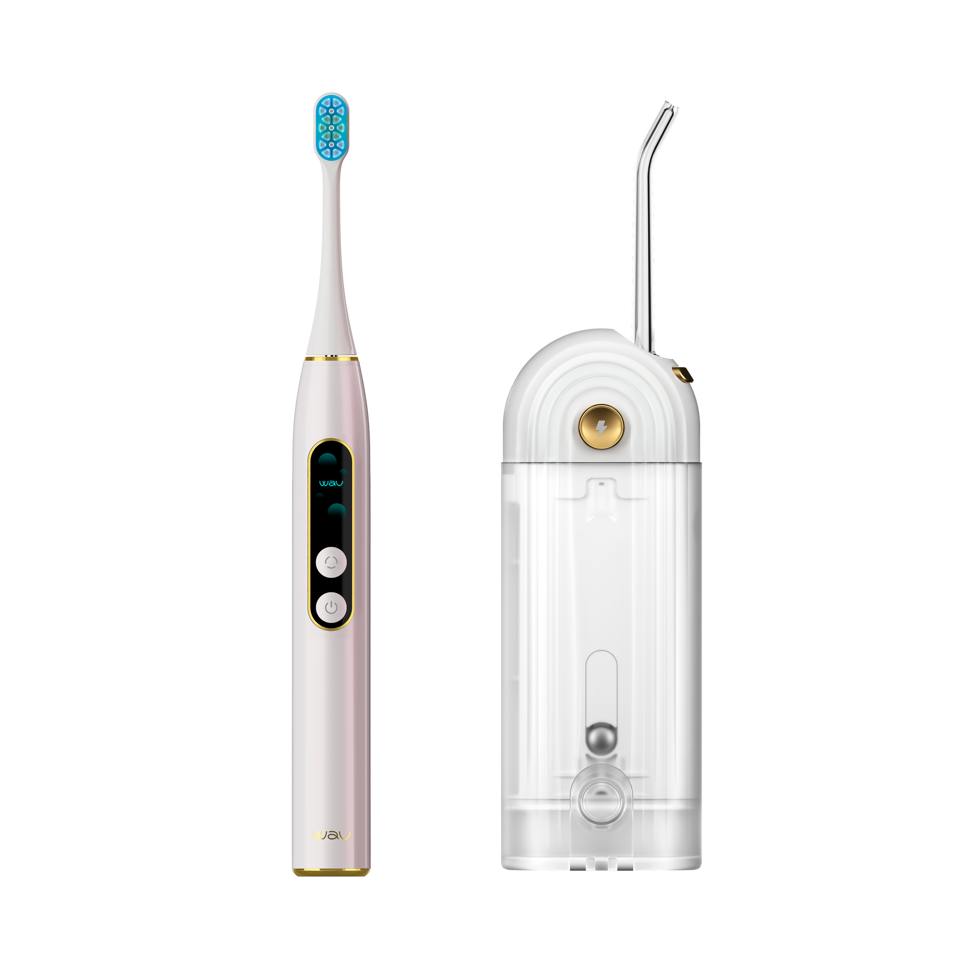 O combinație pentru o igienă impecabilă. Periajul sonic MORI 2.0 curăță profund smalțul și masajează gingiile, în timp ce irigatoarea portabilă MIGA Pro completează îngrijirea, eliminând murdăria din zone greu accesibile și asigurând sterilitatea.